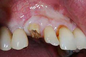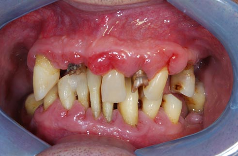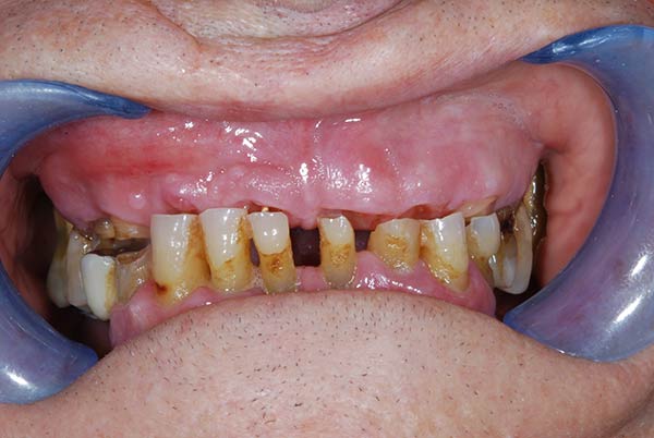 I denti irrecuperabili dell'arcata superiore ed inferiore del paziente di anni 65