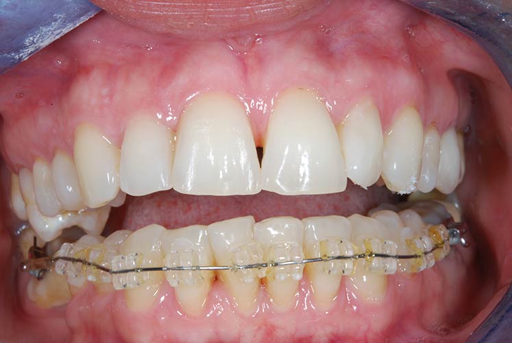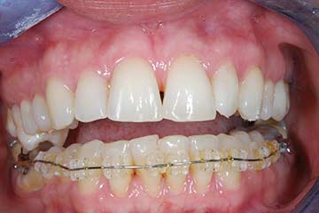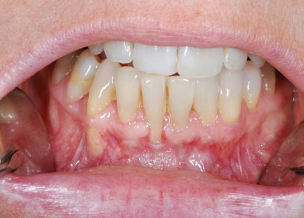 Con protesi fissa superiore e protesi fissa inferiore