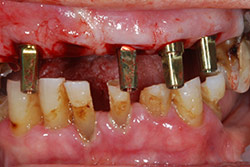 sono stati sostituiti da 10 impianti, cioè protesi radicolari endo-ossee che sostengono le protesi fisse superiore ed inferiore.